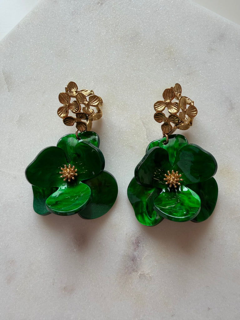 Boucles d'oreilles OPHELIA vert marbré